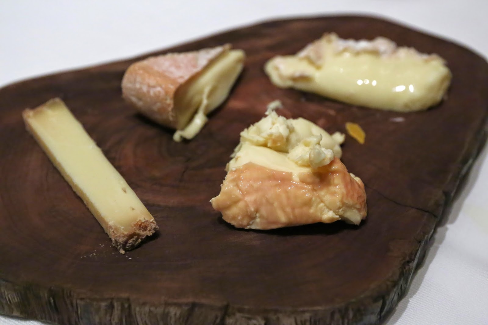 French unpasteurized cheeses matured by Bernard Antony - Sebastien wheeled the cheese cart over and served us a small selection...