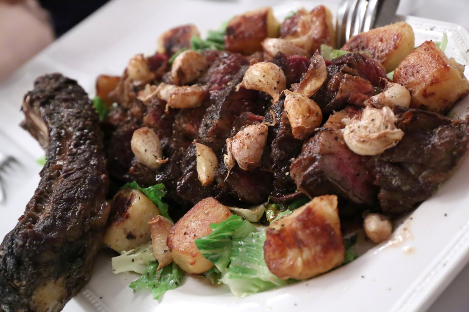 Chuleta de Rubia Galega - ah.... the chuleta... I have missed you! Tonight the portion was a little smaller since there ended up with only four of us, but we did a pretty good job in polishing off most of this. The flavors were still incredibly intense, like the aged Comté or Gruyère I love so much. I waited and watched while everyone worked on the tender cuts of meat, and finally I couldn't hold out any longer... and reached out to grab the foot-long bone. If the flavor of the meat was already intense, it should surprise no one that what's left on the bone was just out of this world.