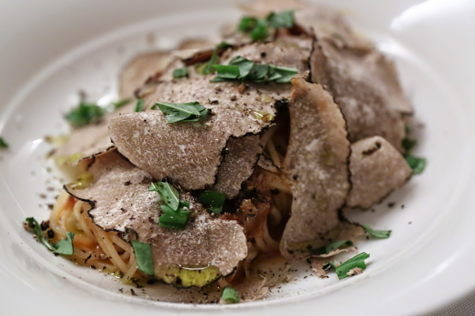 Summer truffle capellini: tomato/basil/garlic confit - very delish just like last week. So easy to inhale this, especially with all that summer truffle.