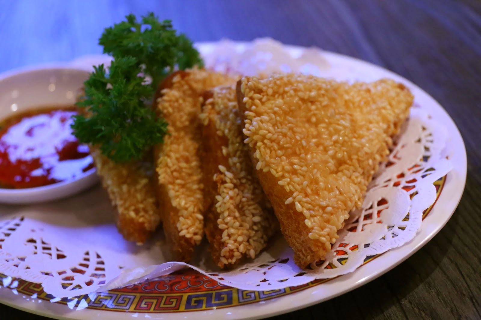 Sesame prawn toast - nice and fragrant with all those sesame seeds. Unfortunately this was very bland, and really needed the sweet chili sauce.