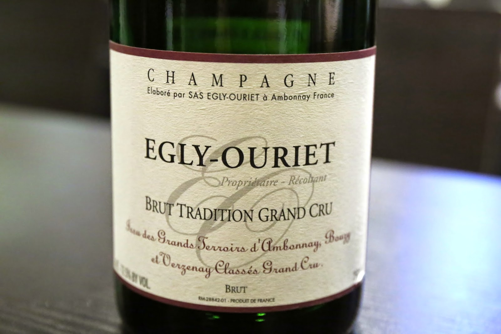 Egly-Ouriet Brut Tradition Grand Cru, degorgée Janvier 2013 - pretty ripe on the palate, with notes of marmalade. Always delicious to drink this wine.