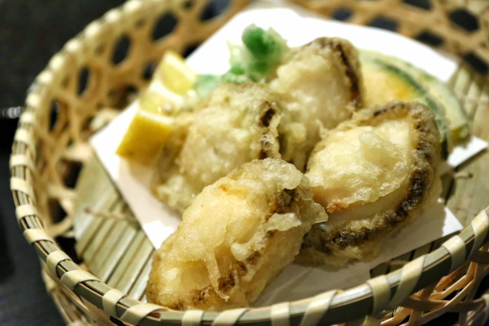 Tempura (天ぷら) - this was the first time that I've had abalone (鮑) tempura, and it was pretty interesting. Because I ate it whole, while the abalone wasn't really chewy, the thickness and the size of it meant that it took some work. The shishito peppers (獅子唐辛子) were pretty nice.