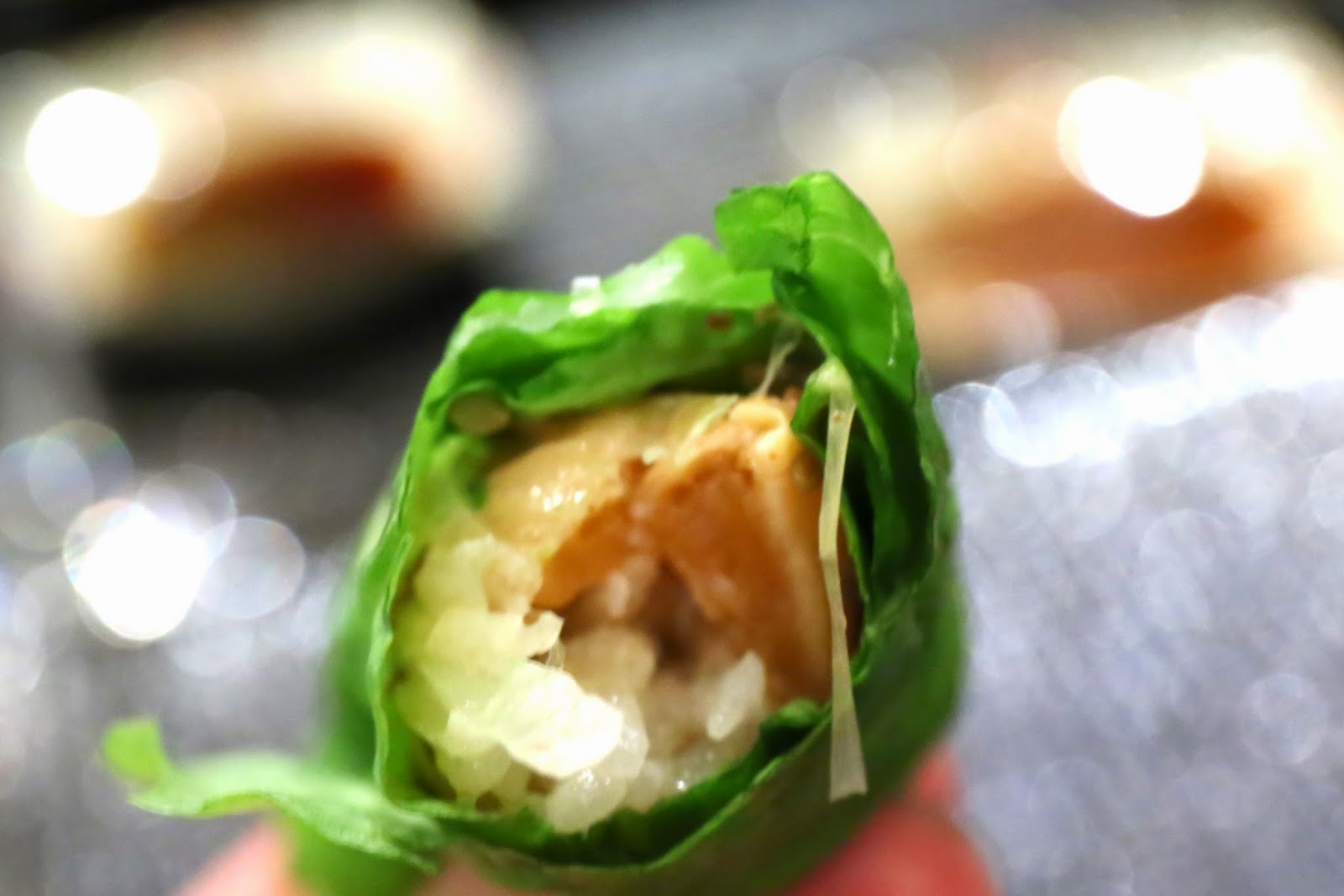 This simple, clear soup came with a couple of rolls of fried tofu skin (油揚げ), shiitake (椎茸) mushroom, and a single shrimp ball (海老団子). A couple of pieces of green yuzu (柚子) skin provided it with incredible fragrance.