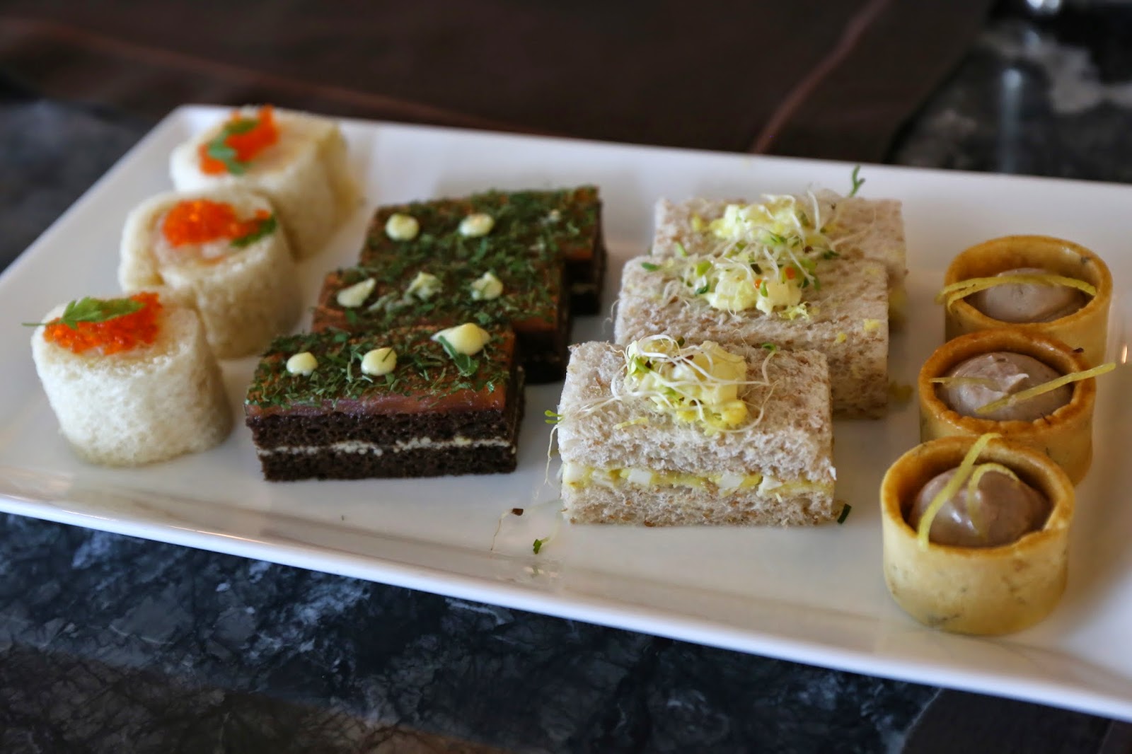Herbed smoked salmon dark rye bread sandwich with lemon curd - probably my favorite of the bunch. This was just too classic - with a thin layer of smoked salmon on top of the bread, generously coated with dill that provided a lovely fragrance in the mouth.