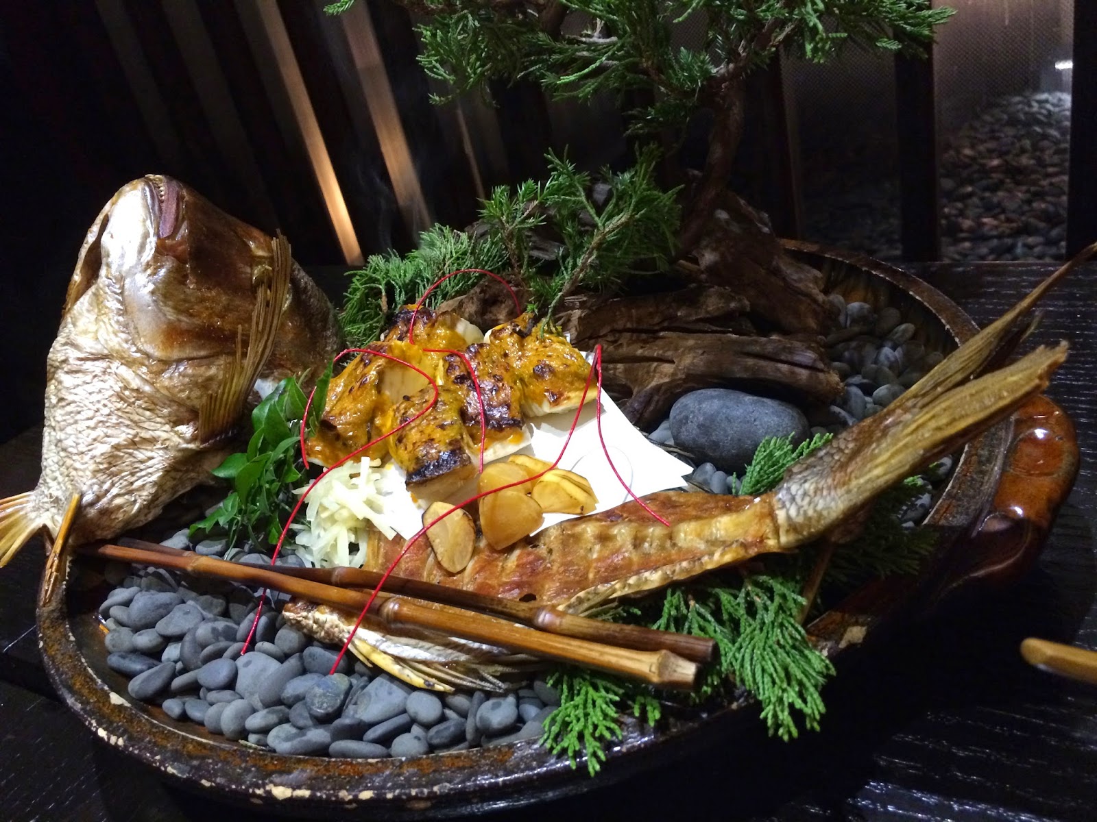 Third anniversary special: celebratory grilled red sea bream with sea urchin (三周年特別焼物 祝い鯛雲丹焼き) - from Wakasa Bay (若狭湾) in Fukui Prefecture (福井県). Just like my last visit, the grilled fish came with a heavy smoke that filled the room. In fact, it was so smoky that we knew when any table close to us (and we were all in private rooms in the basement) were being served this course...