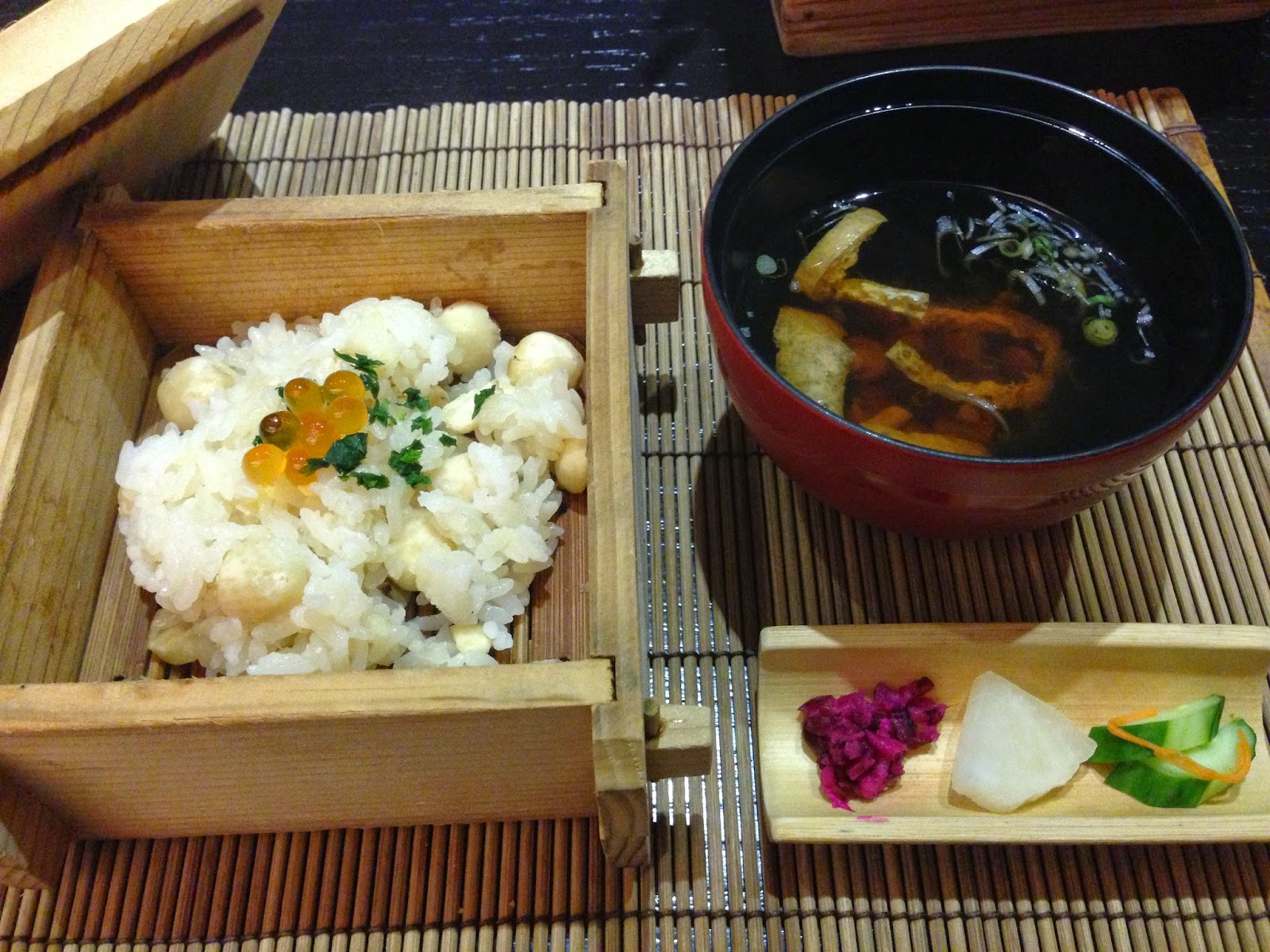 Steamed rice with lotus seed and salmon roe (食事 イクラと蓮の実の御飯) - this was probably the first time I've had just lotus seeds together with the rice...