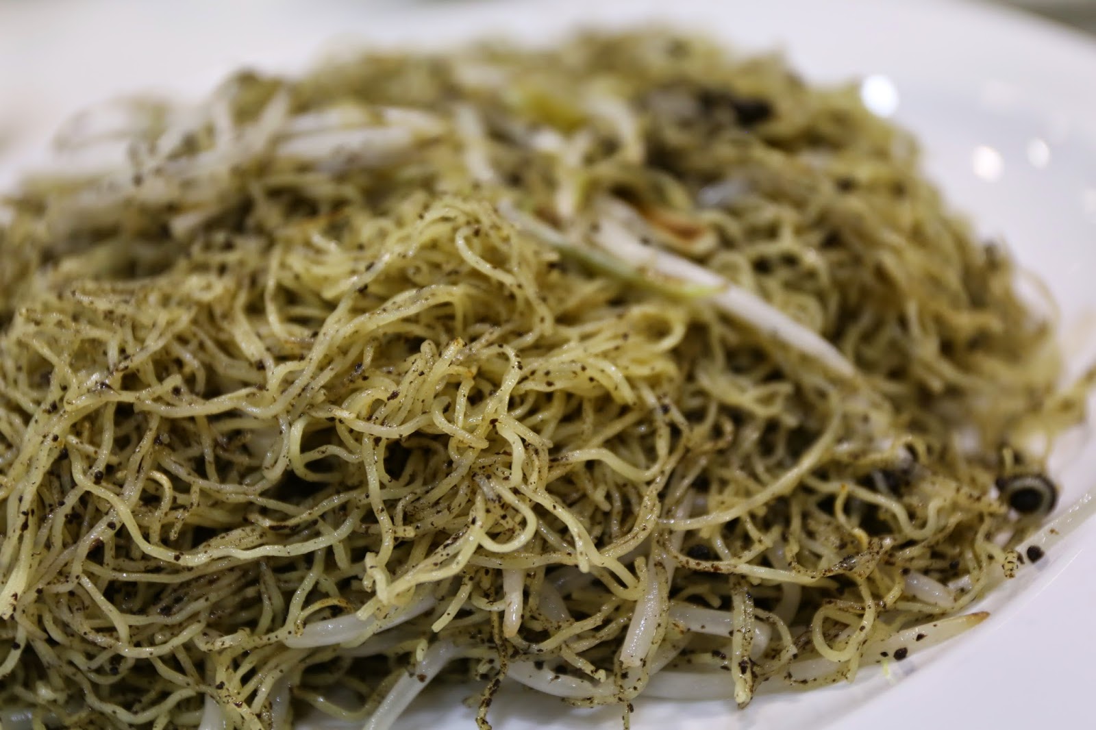 Fried noodle with black truffle (法國黑松露炒麵) - I was expecting to see a big bowl of E-fu noodles (伊府麵) or something, but they made this with the same egg noodles that are used for classic Cantonese wonton noodles. Thankfully there were no notable alkali flavors, but that may have just been covered up by the good amount of black truffle paste used to toss the noodles. Very yummy, but could have used a little more wok hei (鑊氣).