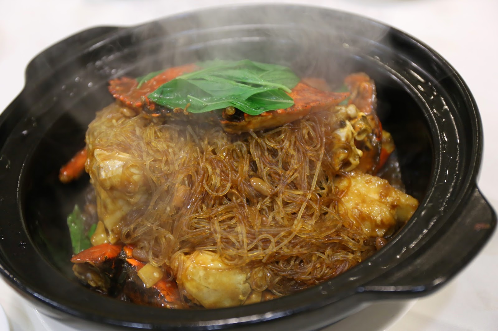 Baked crab with vermicelli and home-made sauce in casserole (奇香粉絲蟹煲) - I liked this the first time, and ordered this as one of the kids wanted crab. Very fragrant, indeed, with Thai basil, garlic, peppercorns, fermented soy beans (豆瓣). I also find it interesting that they throw in thin slices of three-layered pork along with the crab and glass vermicelli. Very, very yummy.