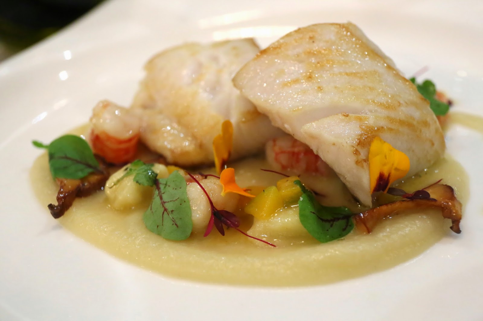 Herb black codfish, wasabi gnocchi, Sicilian prawns, celery root, mushrooms - don't see no herb on my cod, but it tasted just like it should... very moist and succulent. In fact it almost oozed juices... although the seasoning was slightly uneven. The wasabi gnocchi were more of a curiosity than anything, but the Silician prawns were bursting with intense flavors. Pan-fried chanterelles and celery root purée provided the contrast of savory and sweet flavors,