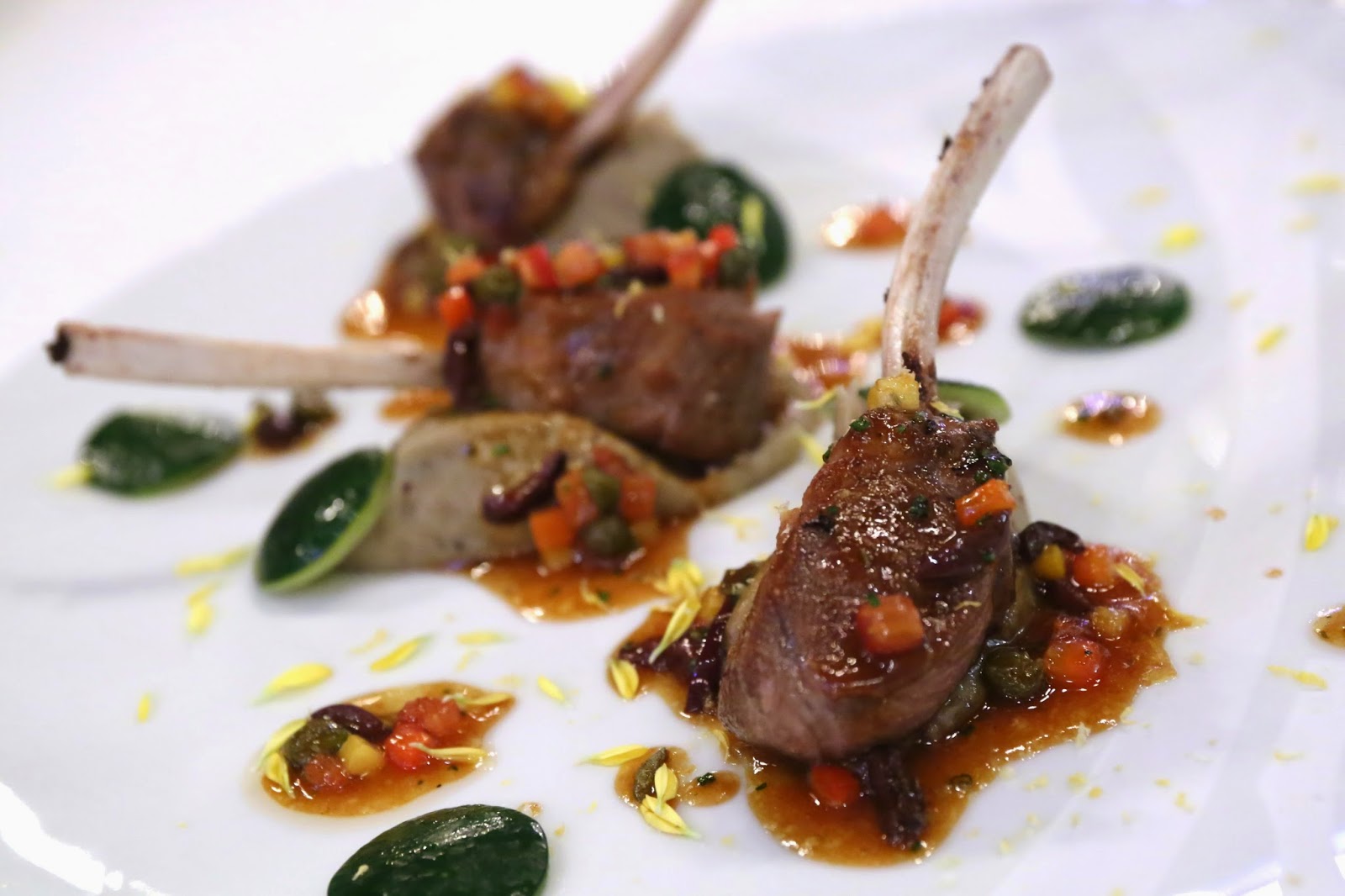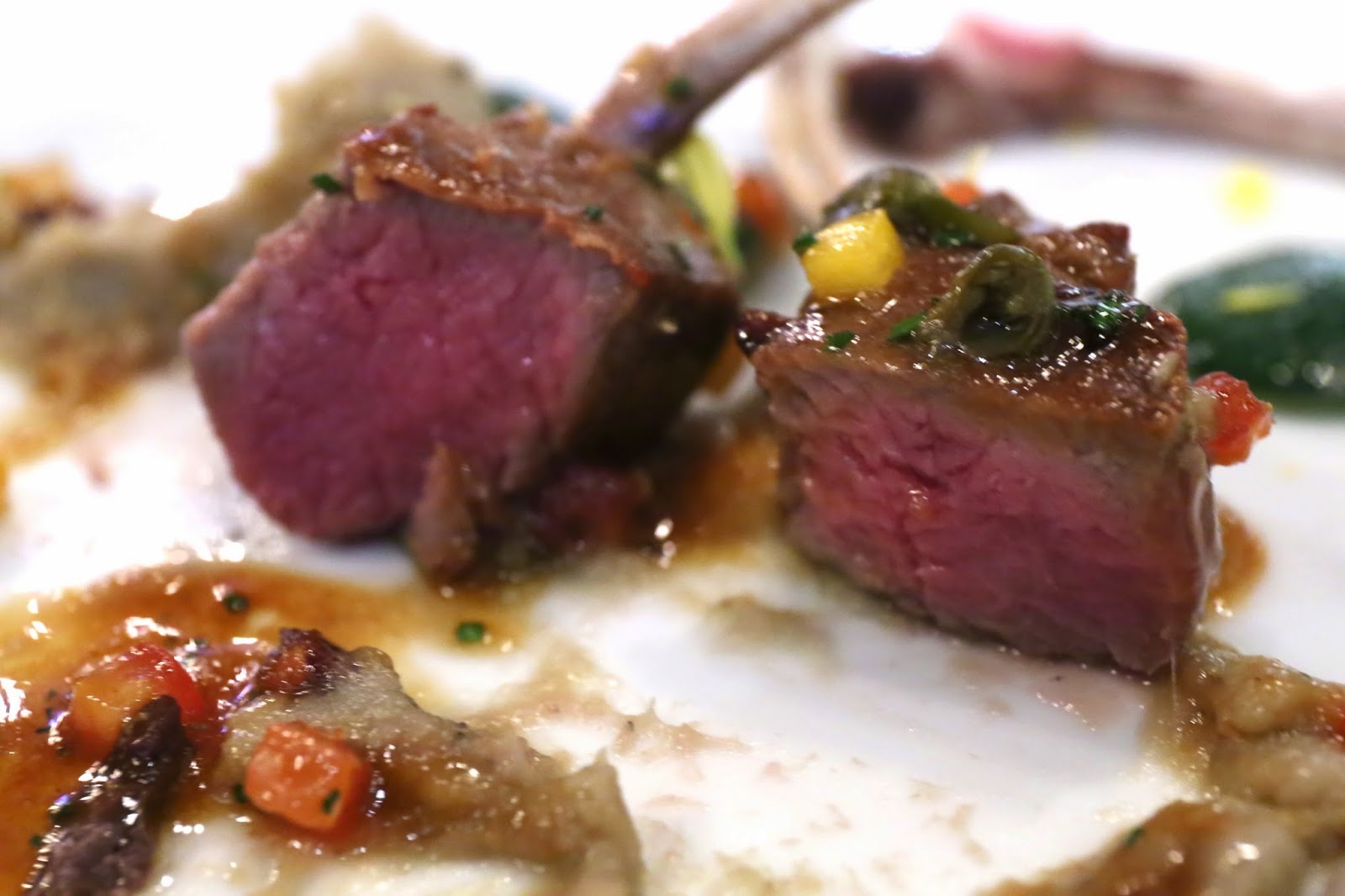Australian lamb cutlet, eggplant caviar, zucchini and lamb jus - loved the flavors here... green zucchini discs, brunoise of carrots and yellow zucchini, black olives... all worked well with the lamb jus.