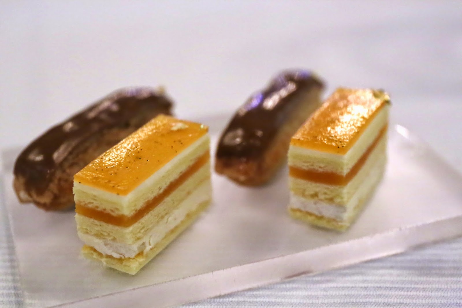 Tropical opera and coffee eclair - the opéras were made with layers of sponge cake, and I didn't find the texture very interesting. The éclairs, on the other hand, were fantastic.