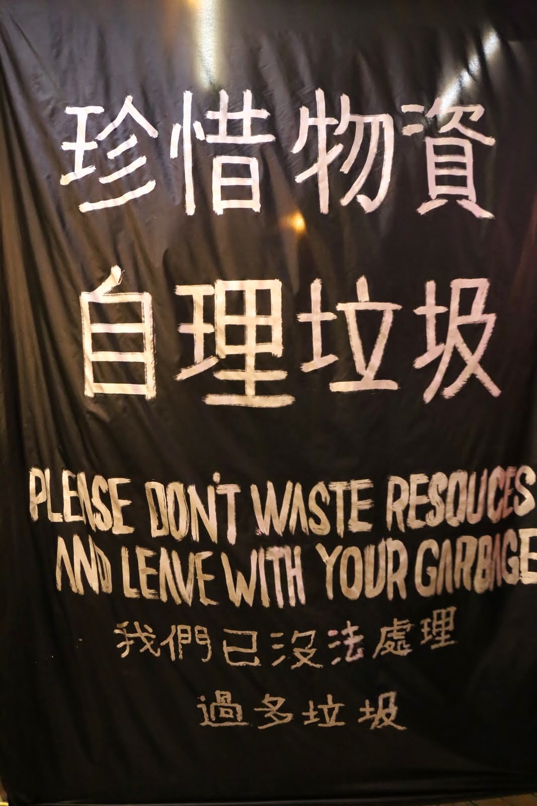 News about the protesters picking up their own trash has circulated around the world, and there were indeed many signs around reminding people to be mindful. I actually didn't see too much garbage lying around in the center, but I did see piles of it on the outskirts.