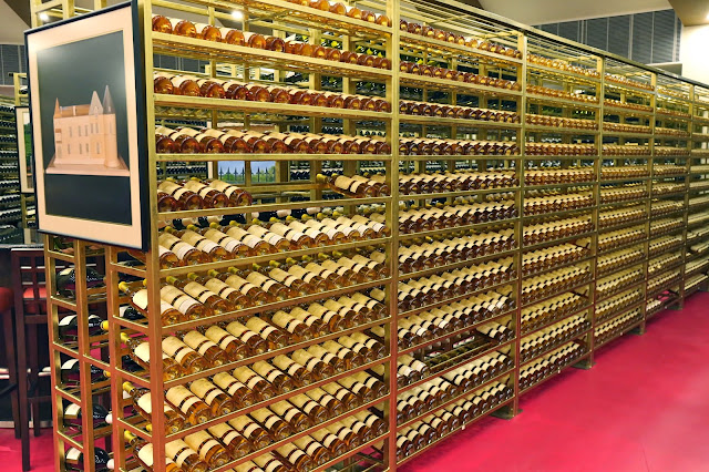 We moved on to one of the new cellars - which was seriously eye-opening in a different way. There's a large round table in the middle of the room, which seem to be the perfect place to hold a wine tasting. Radiating outwards are rows and rows of wine racks, and some of those racks consist entirely of wines from a single château or a domaine. A few of these racks are easily identifiable by pictures of the architectural wine cabinets made by Viscount Linley which corresponds to the châteaux (the actual cabinets are on display at Robuchon au Dôme).