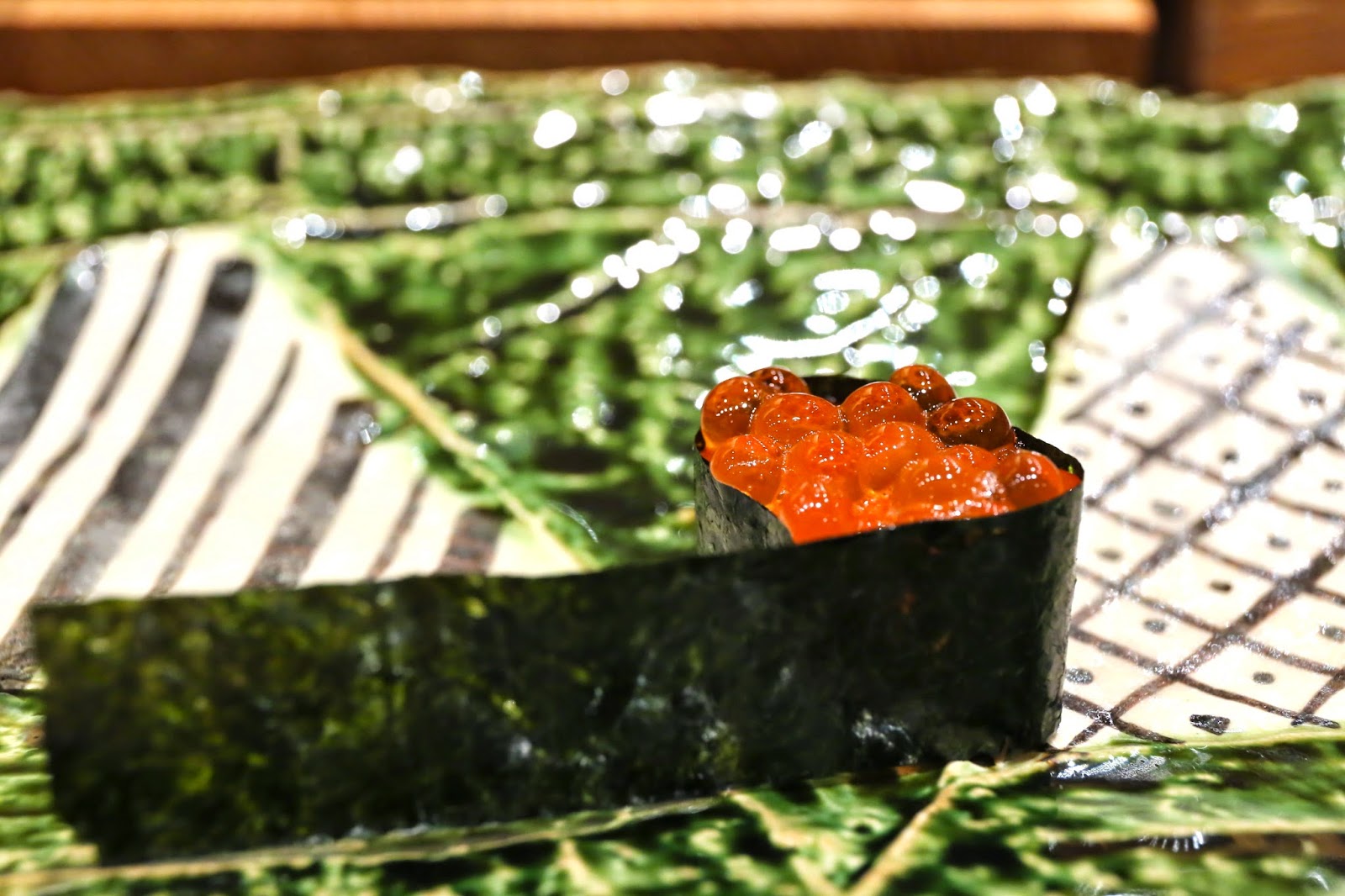 Salmon roe (イクラ) - if I had to nitpick, I would take issue with the fact that the strip of seaweed was not sticking to the rice correctly. Otherwise this was good.