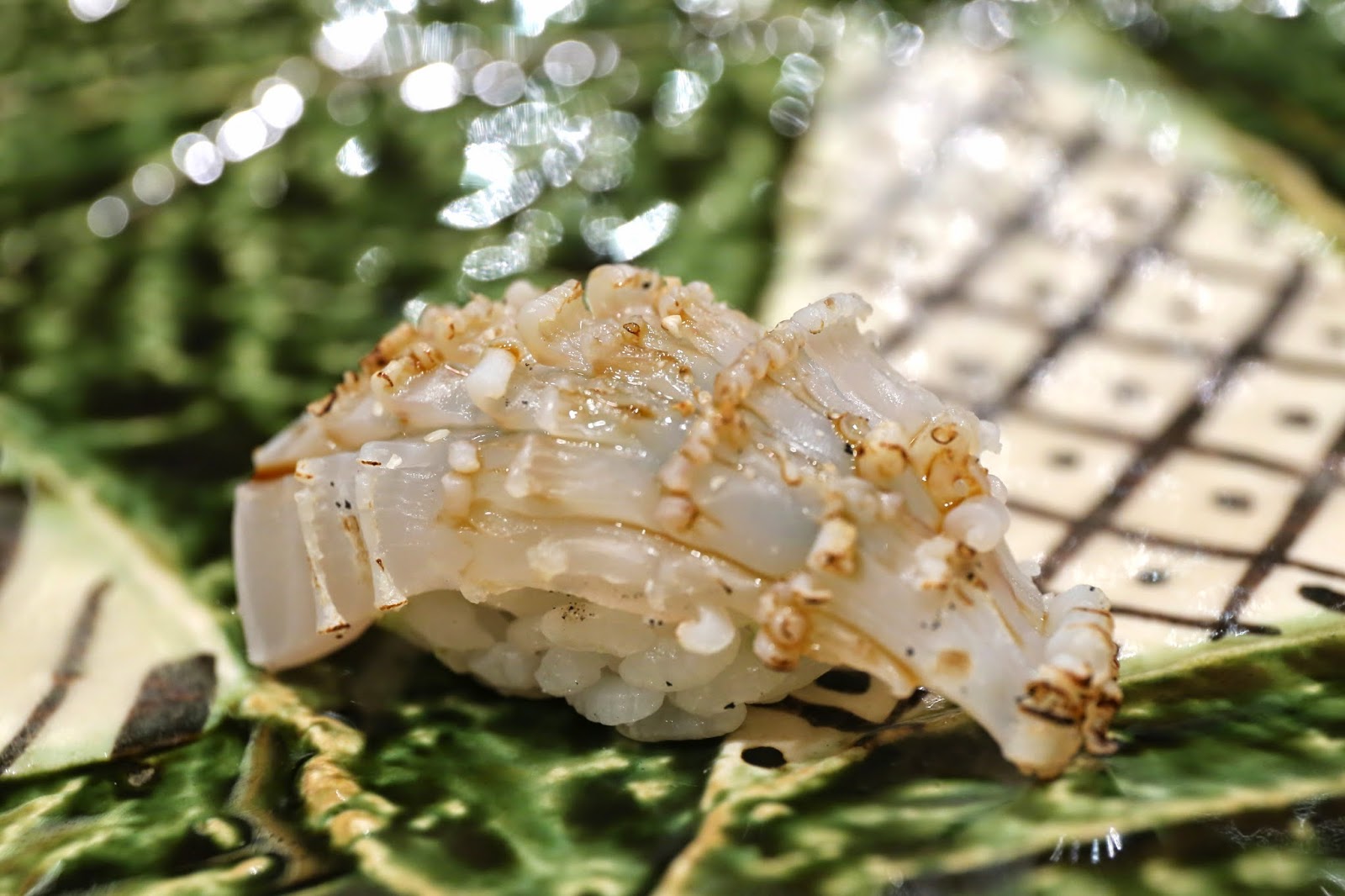 Squid (烏賊) - scored and then torched. Sprinkled with sesame. I could definitely taste the smoky flavors from the torching. Love it.