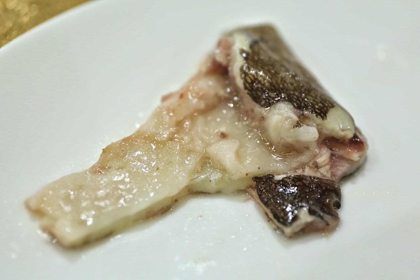 Double-boiled soup with moray eel head, gastrodia, Szechuan lovage and Chinese Angelica (天麻川芎白芷燉鱔皇頭湯) - our host chose this instead of the seasonal snake bisque, because it was indeed something very special. The moray eel apparently weighed 22 catties (!), and only the head was used in making the soup. The mouth and right eye are evident in the picture...