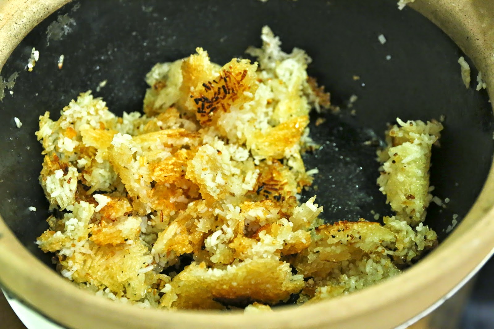 After we each had our bowl of rice, I asked the staff to turn the remaining rice into rice crispies (飯焦). This was done tableside.