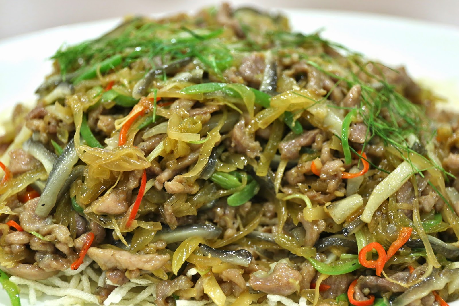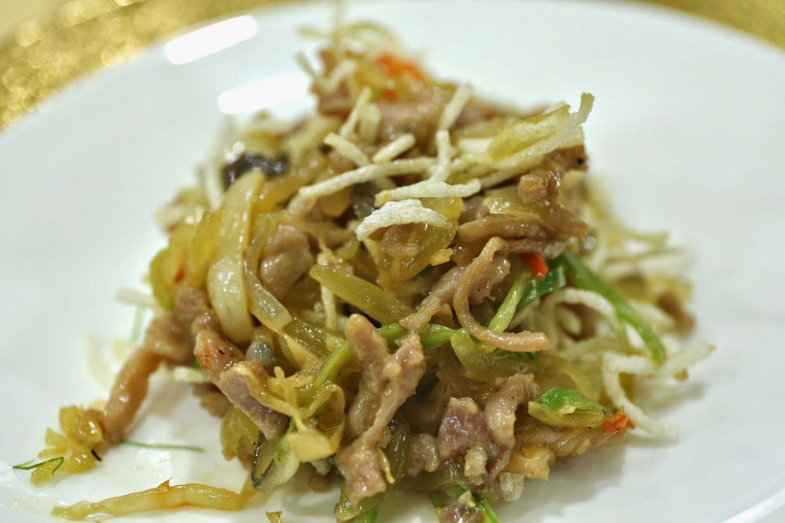 Stir-fried shredded soft-shelled turtle with Chinese pickles (味菜炒山瑞絲) - 'tis the season for exotic game like turtle, and the host and I enjoyed another turtle dish some weeks ago. Tonight our turtle was "only" five catties.