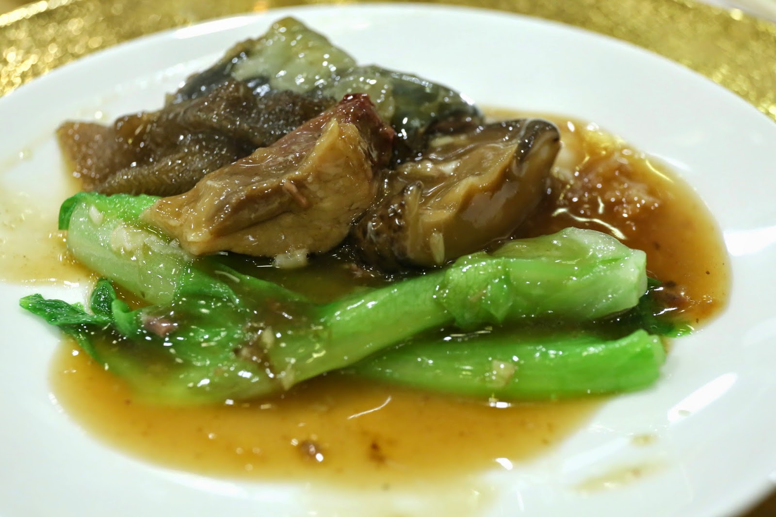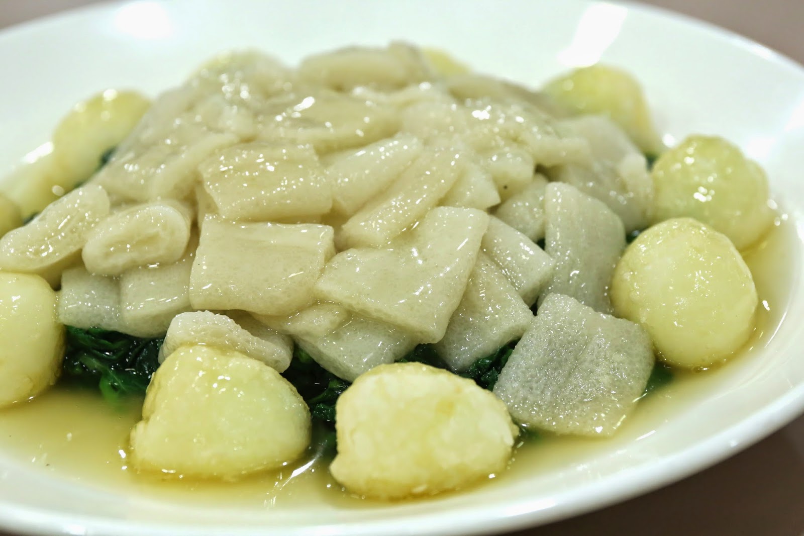 Pigeon and bamboo pith with pea shoots (鴿蛋竹笙扒豆苗) - I love pigeon eggs, especially when they've been coated with a starchy batter and deep-fried. The bamboo pith (竹笙) and pea shoots were both pretty good.
