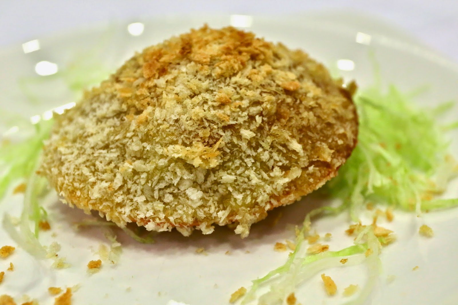 Baked stuffed crab shell (焗釀鮮蟹蓋) - one of the few dishes tonight that I haven't tried before. Shredded crab meat is piled on top of a crab shell, and baked with a layer of what looked like Japanese panko (パン粉) - bread crumbs - on top.