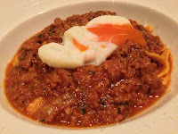 Harlan was surprised that I didn't get the pasta with carabineros, knowing how much I absolutely love them. No, it's been waaaay too long since my last bowl of hand-crafted tagliatelle, Italian wild boar ragout, melting organic egg and shaved Pecorino cheese, and I needed another fix. This was a BIG bowl of pasta... with tons of ragout and that nice, runny egg on top. Very yum, and I was very full by the time I got done. Bird had a taste and said it reminded her of bolognese... No, my dear cousin, this was much, much better...