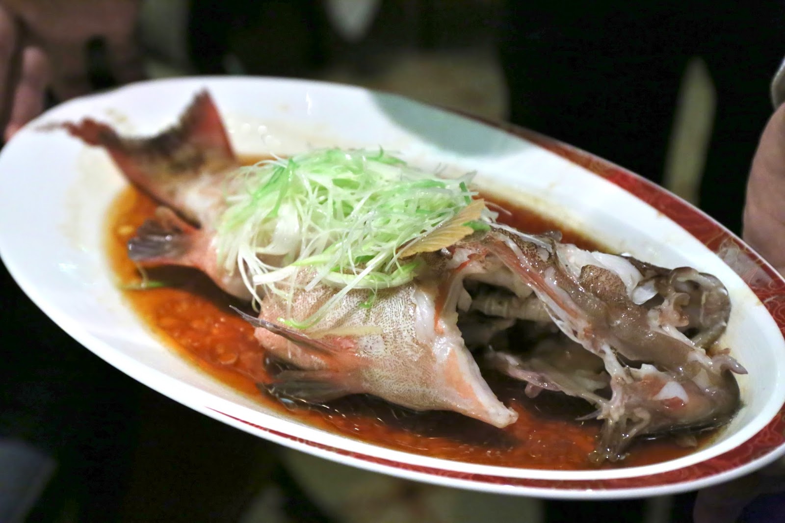 I always thought that some the dishes in the "vegetarian" section of the menu - especially ones which were "braised" - were not strictly vegetarian. The waiter explained to me which ones from the menu needed to have their sauces made from scratch for us, but when he apologized to us for the steamed fish taking a little longer because the marinade needed to be specially made for us, I was dumbfounded. Huh? Isn't the marinade for Cantonese steamed fish just soy sauce and cooking oil, which is why it's sometimes referred to as 豉油蒸? Well, apparently not only does the kitchen make liberal use of chicken bouillon powder in its cooking, this apparently extends to the classic steamed fish as well!