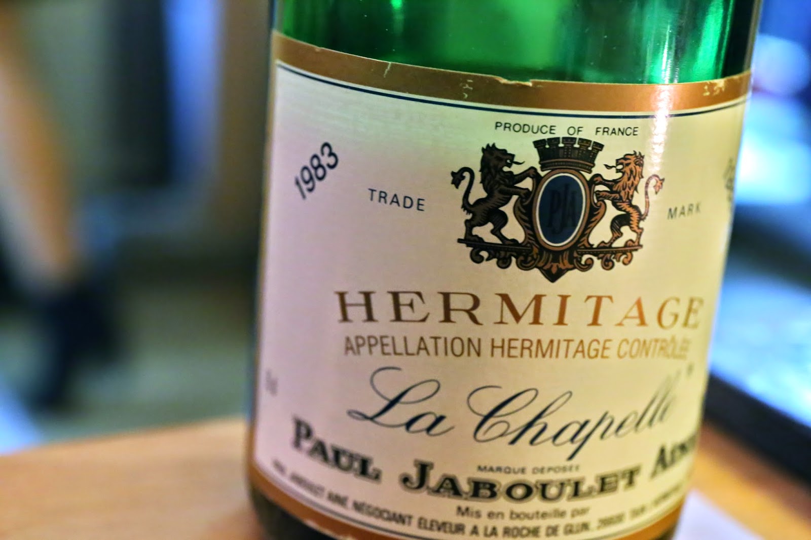 1983 Jaboulet La Chapelle - nose was very muted at first and the wine seems to be a little over the hill, after double-decanting for an hour. Some stewed fruits, and evolved later to reveal green pepper. Later still some burnt rubber showed up, with leather notes. After 5 hours finally some more fruit emerged. Ex-domaine stock with a curious plastic capsule inside the tin capsule.