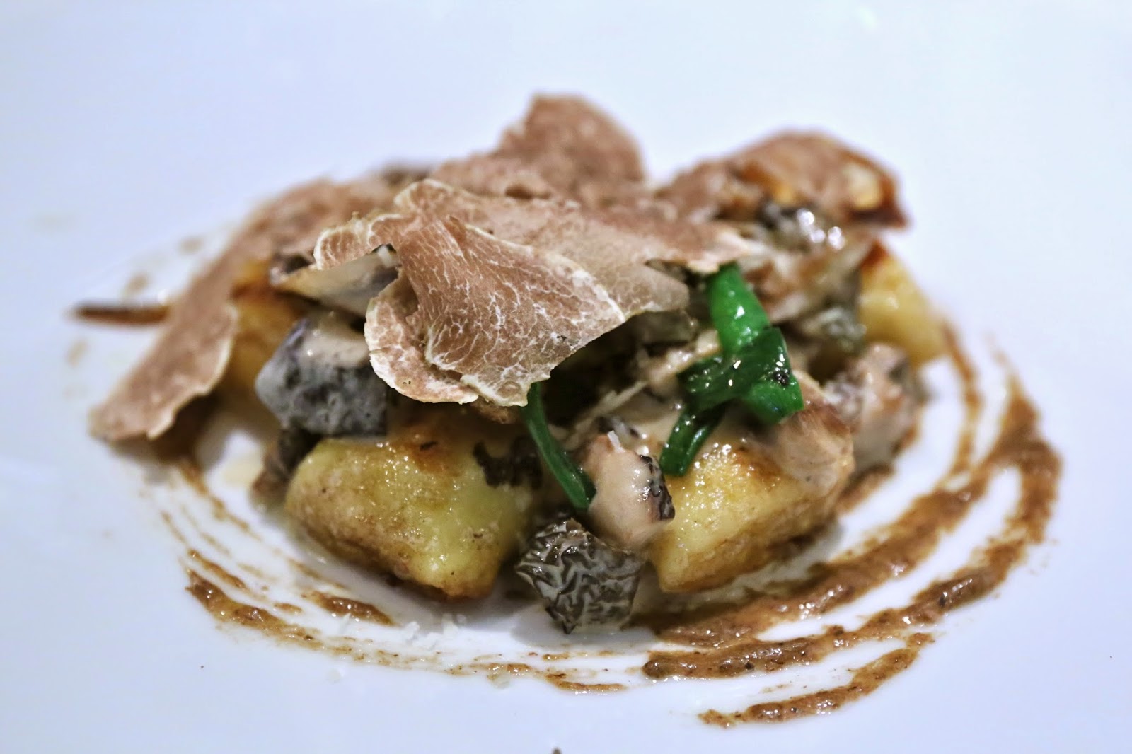 Sauteed potato gnocchi, white truffle, cep purée, roasted leek, morel ragout, Parmesan - this was an unexpected gift from the kitchen. Gnocchi slightly browned on the outside, enveloped by the full seasonal fungus flavors from ceps, morels and the white truffles. The roasted leeks were very, very tasty, too! Burp.