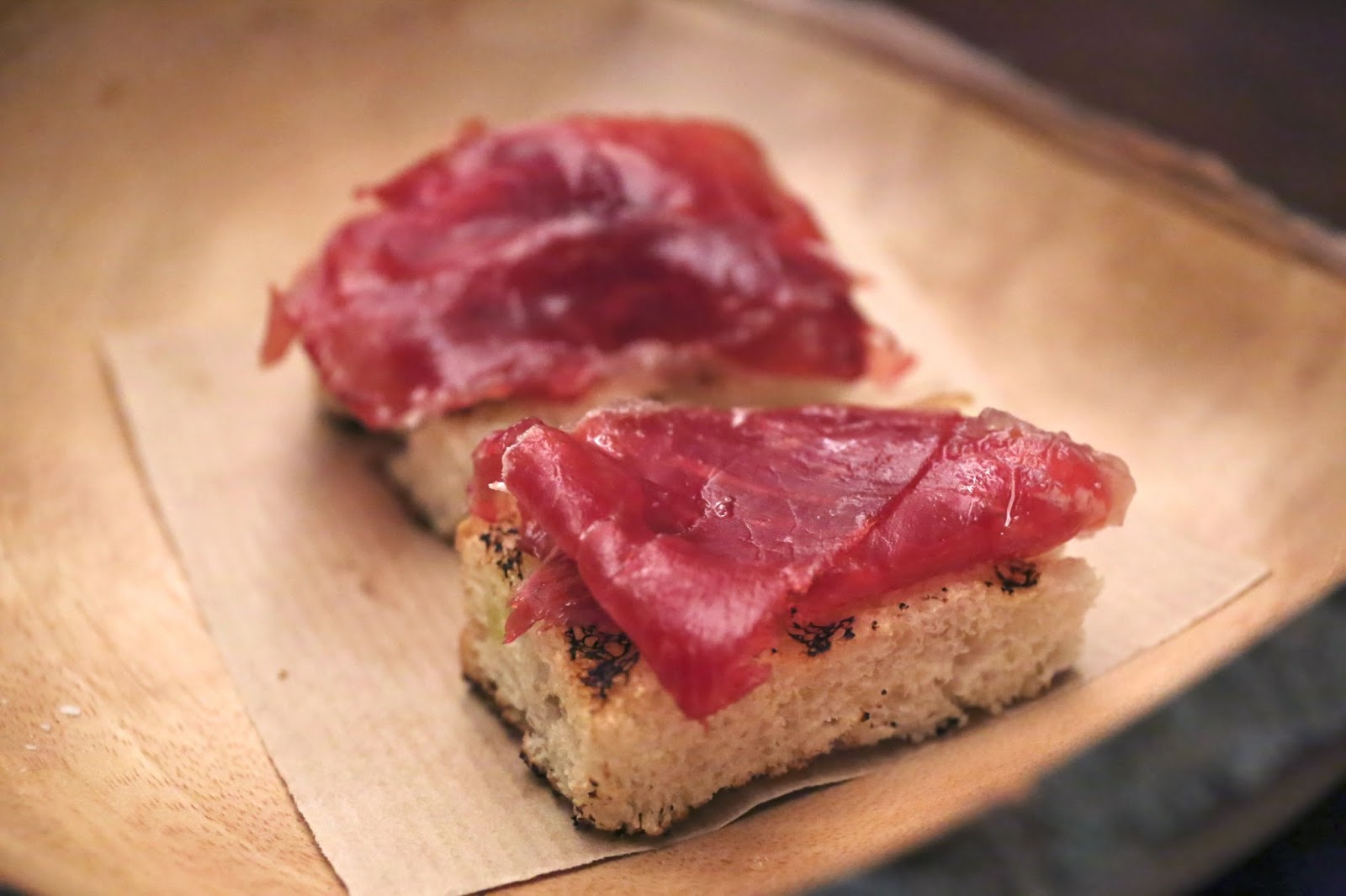 Cured ham - very nice. Toast had a surprisingly pronounced smoky flavor.
