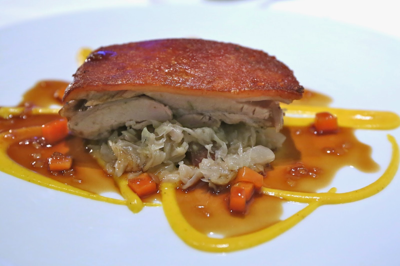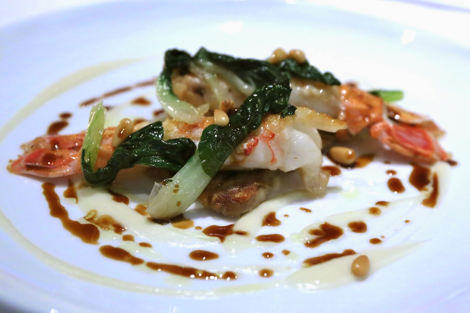 Sauteed langoustine, pork belly, sweet garlic purée, pine nuts and balsamic jus - I fell in love with the dish as soon as it arrived, before I even raised my fork. The smell of those langoustines kept coming at me, and my mouth started watering. Taking my first bite confirmed that these were beautifully done and the texture was perfect. I loved the fact that baby bok choy was used to impart the tiniest hint of bitterness. As delicious as the langoustines were, the dish got even better after taking my first bite of the thin pork belly below. The crispy, crunchy browned piece of heaven worked really well with the langoustine. Wow! Just wow!