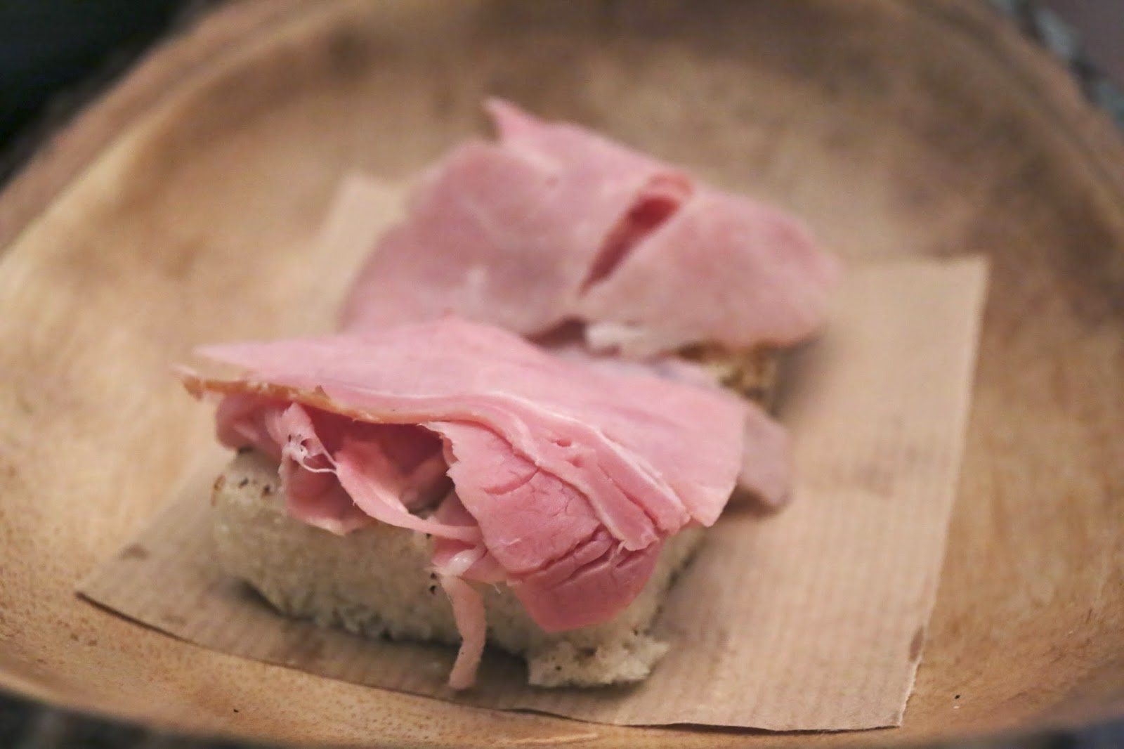 Cooked ham - apparently this was from the same pig as the cured ham, but with different preparation. Inhaled in 2 bites.