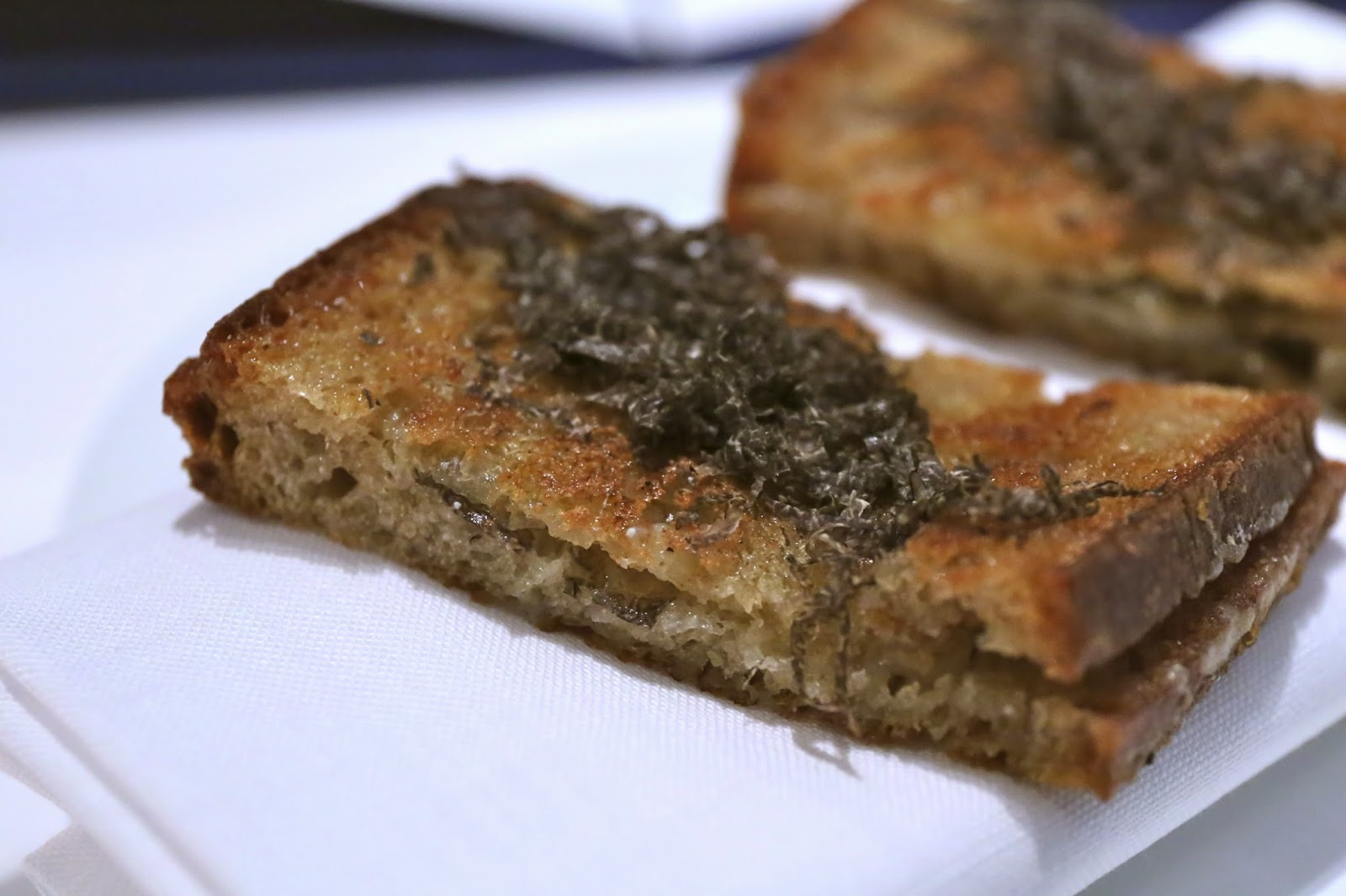 Our amuse bouche was a grilled cheese sandwich, which black truffle shavings on top. What's not to like?!