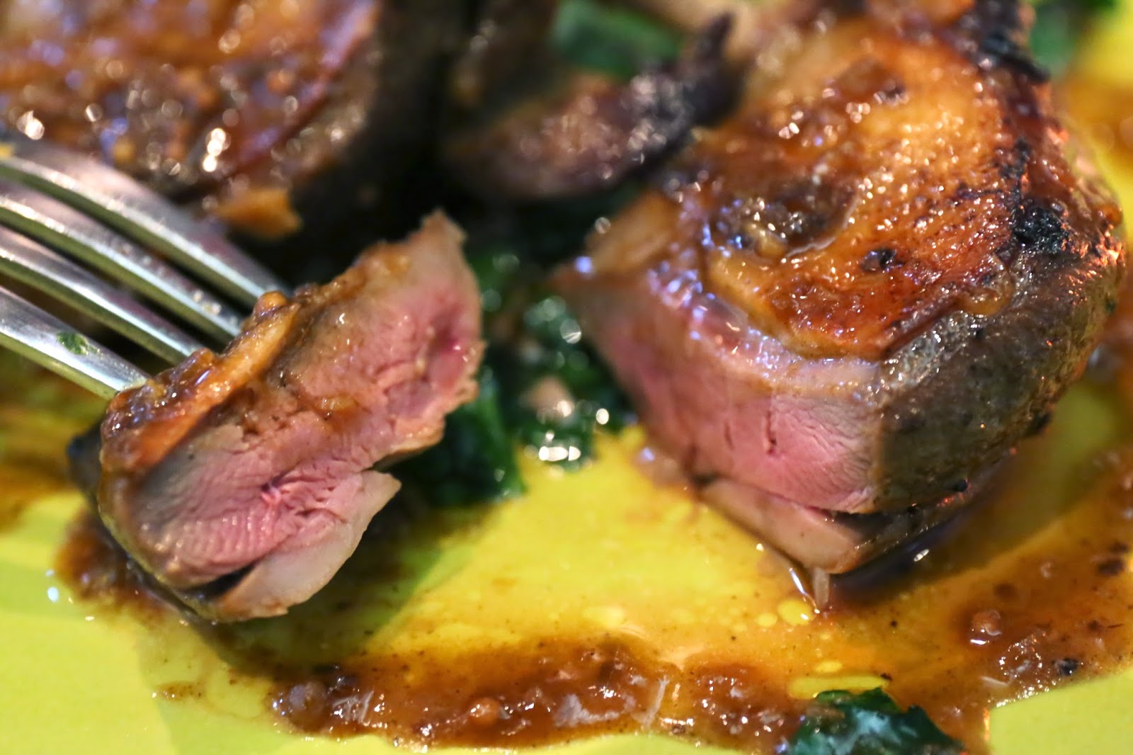 Yup, it's pink inside alright... and I was in heaven the second I put the first chunk of the Racan pigeon into my mouth. This was so soft, so tender, silky smooth almost to the point of slippery. Was this cooked sous vide? I forgot to ask, but I honestly don't remember the last time the texture turned out as fine as this... Served with a fricassée of artichokes, greens, and a mix of pigeon jus, mustard seeds, and lemon chutney.