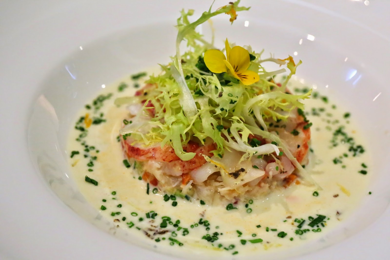 Tourteau crab, lobster, vegetables, chilled potato sauce - I had originally ordered something similar from the dinner menu, but Jeremy suggested that I take the variation that was on offer for lunch. There was a bed of finely diced vegetables at the bottom, on top of which was a layer of tourteau crab meat, followed by lobster carpaccio at the top and garnished with frisée. Finally, some chilled potato sauce and finely diced leeks - somewhat reminiscent of Vichyssoise - complete the dish.