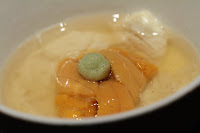 Hot egg custard topped with yuba and sea urchin - NOT your average chawanmushi (茶碗蒸し)… The organic egg came from Kyushu (九州), although the flavors paled in comparison to the other ingredients. The yuba (湯葉) was pretty tasty, and you can really taste the soy flavor. Needless to say the sea urchin packed the biggest flavors, being pretty sweet and fresh.
