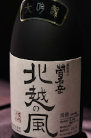 Etsugosenzan Sugandake Hokuetsunokaze Daiginjo (越後泉山 菅名岳 北越の風) - very refined with a semaibuai (精米歩合) of 35%. Sweet on the attack and mid-palate, with a slightly dry finish. Smooth and round, elegant at first but hides the full-bodied flavors, and the Japanese would say "コクがある". Nose of banana and fermented rice.