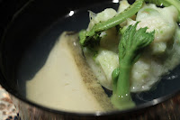 Soup of simmered abalone and scallop dumpling with fragrance of "Fukinoto" - the soup, made with 一番だし was pretty light and sweet. The abalone was actually really tender, and the "dumpling (団子)" of scallop had some green soy beans (枝豆) inside. The scallop was pretty sweet, too. Interesting to have giant butterbur shoots (蕗の薹)…