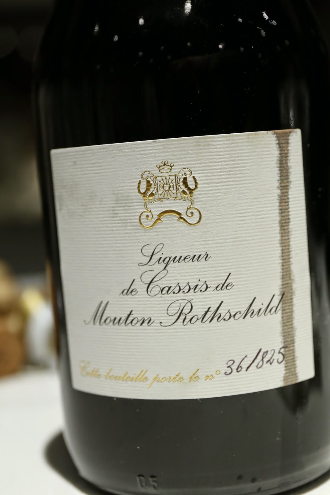 Liqueur de Cassis de Mouton Rothschild - the upside surprise of the evening. Lots of ripe berries, a little violet, some herbal notes that reminds me a little of chartreuse, and also displayed the same savory notes as tomato juice. So alcoholic that it started to singe the hairs in my nostrils... A very limited production of maximum 1,600 bottles a year, so it's amazing that I got the chance to taste this. Winemaker Philippe Dhalluin told me that only two bottlings are more rare - both made exclusively for the family - a Cognac (eau-de-vie?) and an eau-de-vie made from prunes.