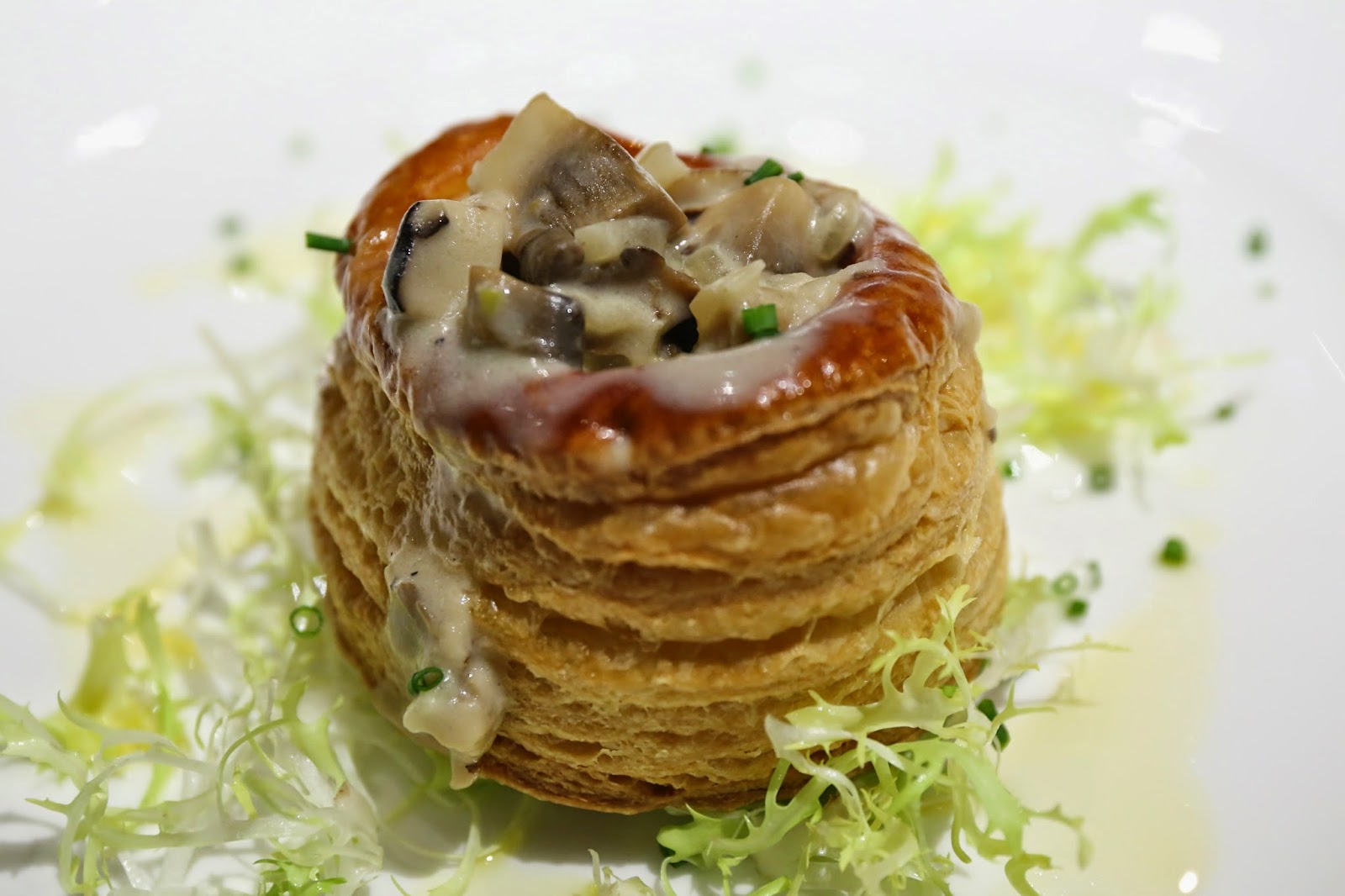 Porcini mushroom vol au vent with rosemary beurre noisette - I loooove vol au vent! Just look at all those layers of flaky pastry! Mushroom, of course, is a natural partner, and this was very, very tasty. I definitely tasted the rosemary.