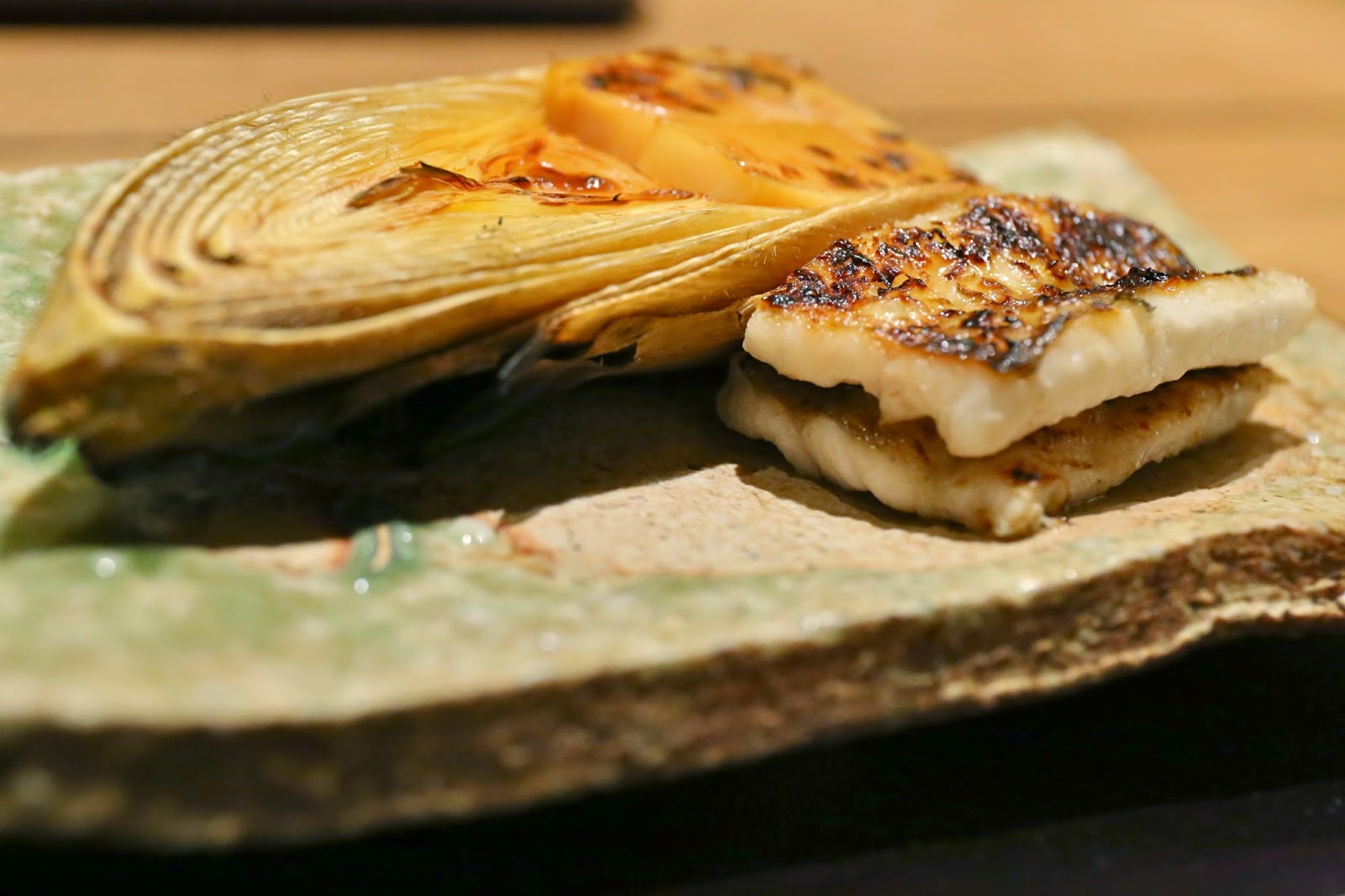 Charcoal-grilled: conger eel and freshly harvested bamboo shoot (焼物:早掘り筍 穴子酒盜焼) - the conger eel came grilled shuto (酒盜焼)-style – bringing out the natural flavors of the ingredient – with lovely smoky flavors from charring. The young bamboo shoot from Kagoshima Prefecture (鹿児島県) was incredibly tender and sweet. I peeled a couple of the inner layers off since I was by no means satiated with just the core.