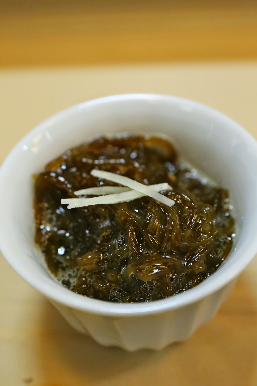 Mozuku (水雲) - the noodle-like seaweed from Okinawa (沖縄) was marinated in ponzu (ポン酢) and served with a little ginger.