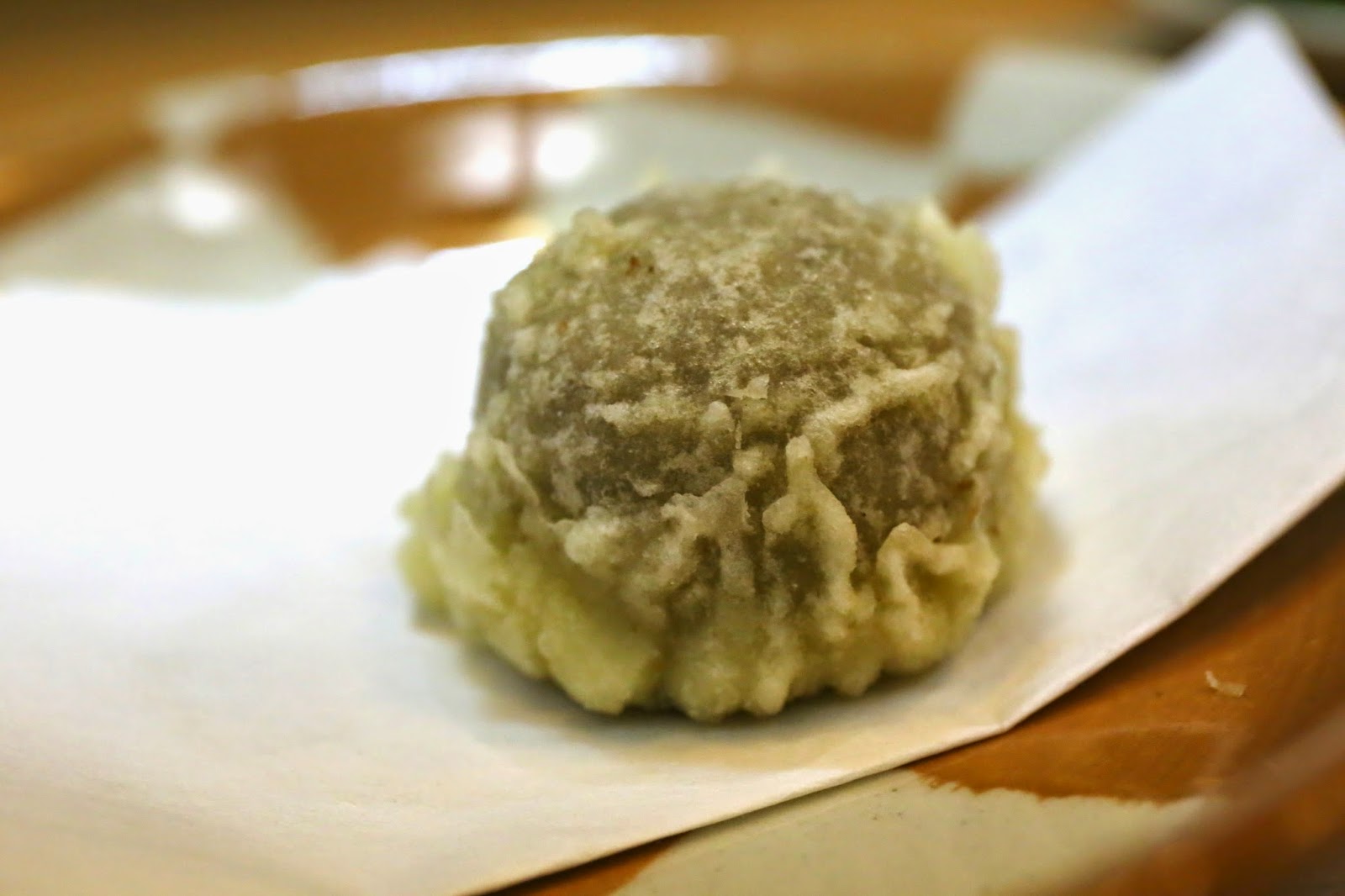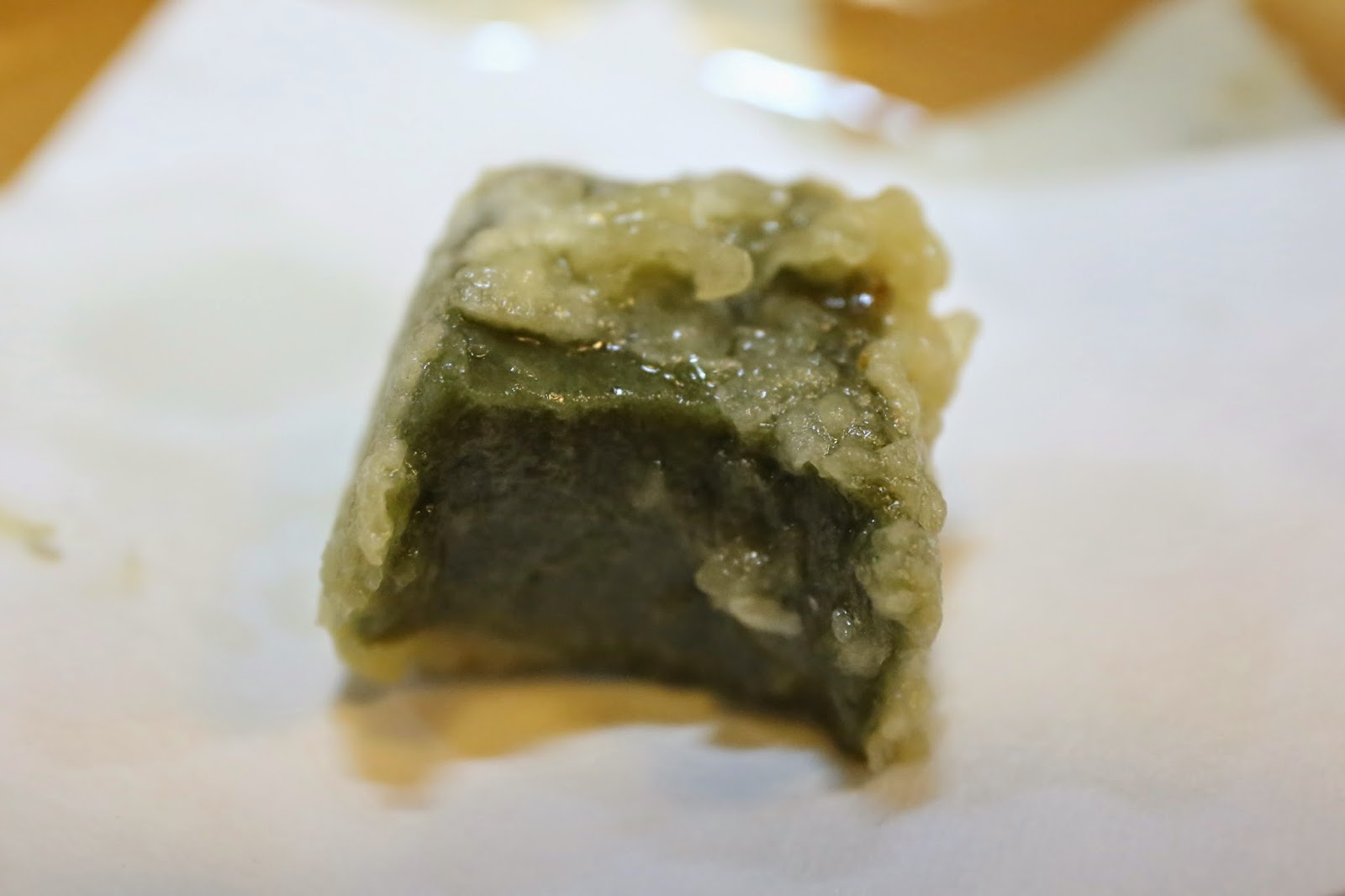 Mugwort gluten (蓬の生麩) - from Kyoto. This was very nice.