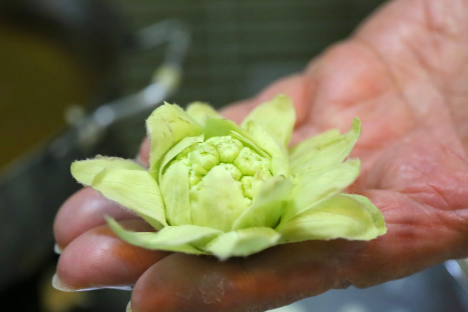 We were meant to get some shishito peppers (獅子唐辛子), but the boss made a switch and gave us these beautiful butterbur buds (蕗の薹), and actually unfurled the petals.