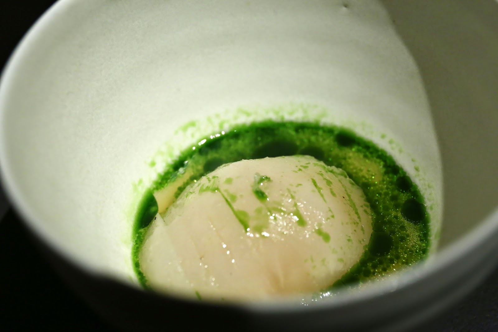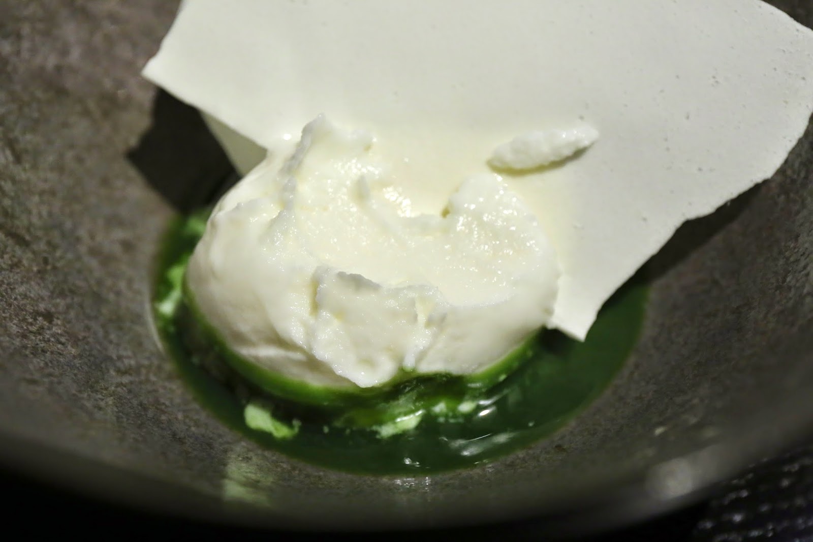 Pumpkin / green gooseberry - is there a little bit of sansho leaves (木の芽), or a little bit of pine, perhaps? Fragrant and lovely in the mouth, and actually much lighter than I expected.