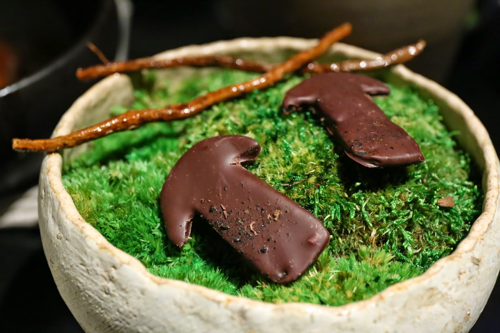 Wild cinnamon and fermented mushroom - we were asked to first lick the syrup off the cinnamon roots, then chomp on the "magic mushrooms" which were fermented mushrooms coated in chocolate and sprinkled with salt. Very, very yum.