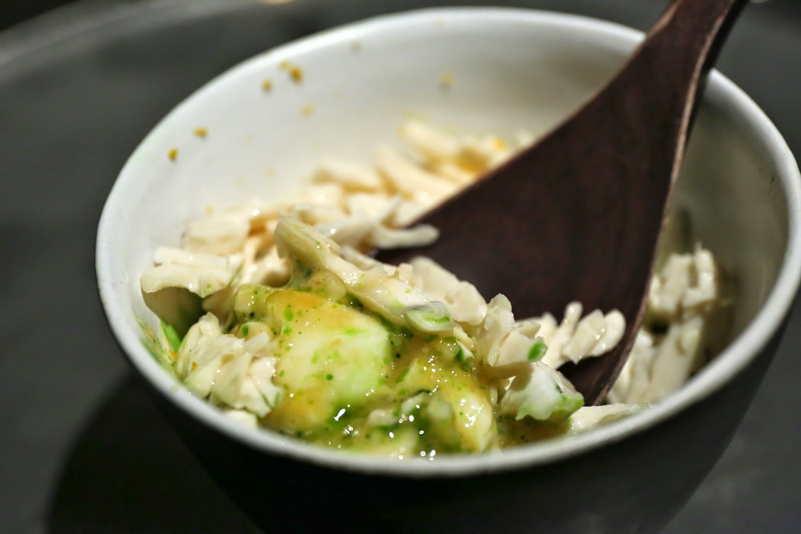 ...because buried under the top layer of shaved walnuts was a thick layer of tofu, with parsley and yuzu sauce.