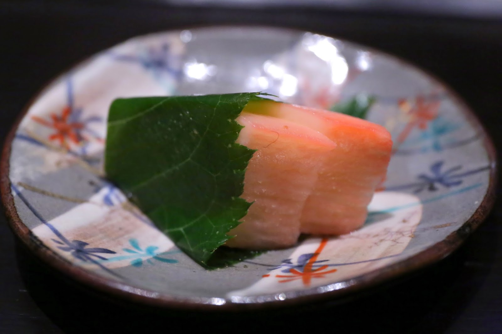 The yamaimo (山芋) was soaked in plum marinated, and came with a cherry leaf.