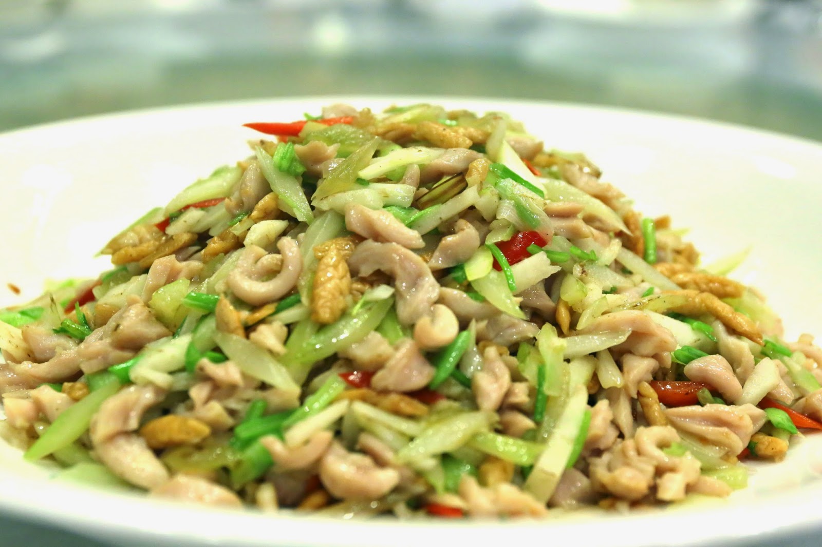 Stir-fried tripe with mixed vegetables (七彩炒肚尖) - pork tripe, celery, red bell peppers, water chestnuts, yellowed chives, sweet pickles, coriander and Indian almonds. Still my favorite version of this dish in town. However, tonight a few of us agreed that the balance was slightly off, as we seemed to be short some of the sweet pickles. The Indian almonds (欖仁) seemed to be a little more toasted than usual, although I'm OK with that.