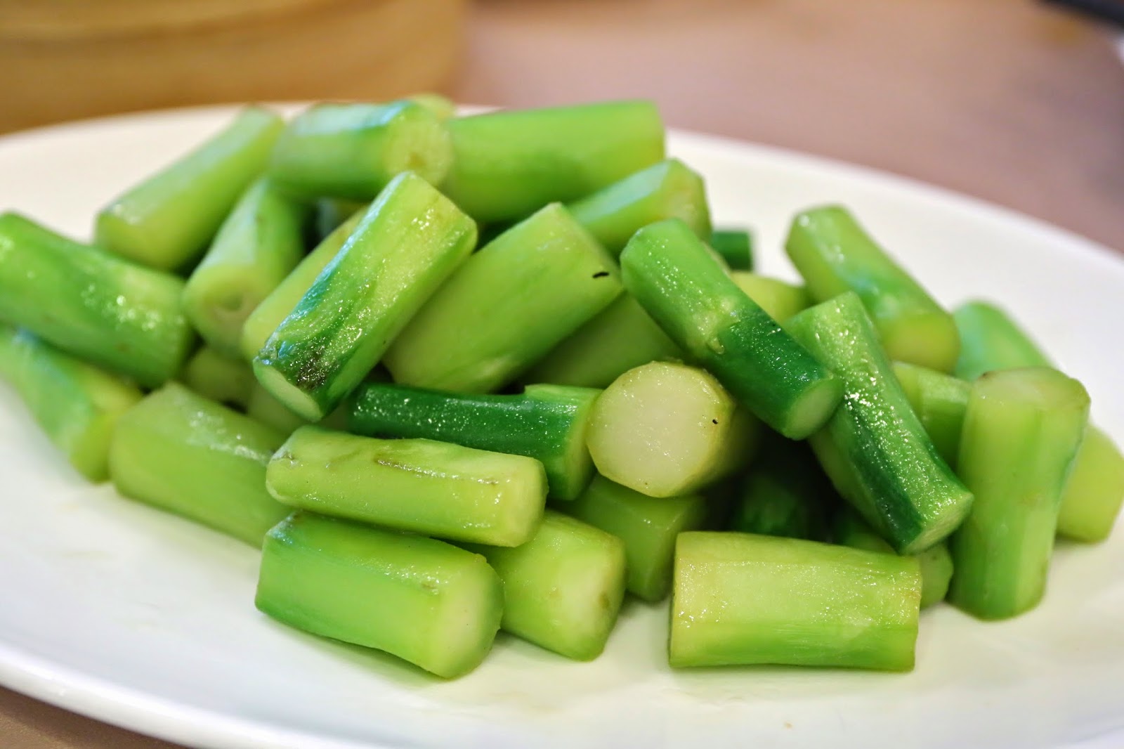 Stir-fried kailan (清炒芥藍) - only the peeled stems here.