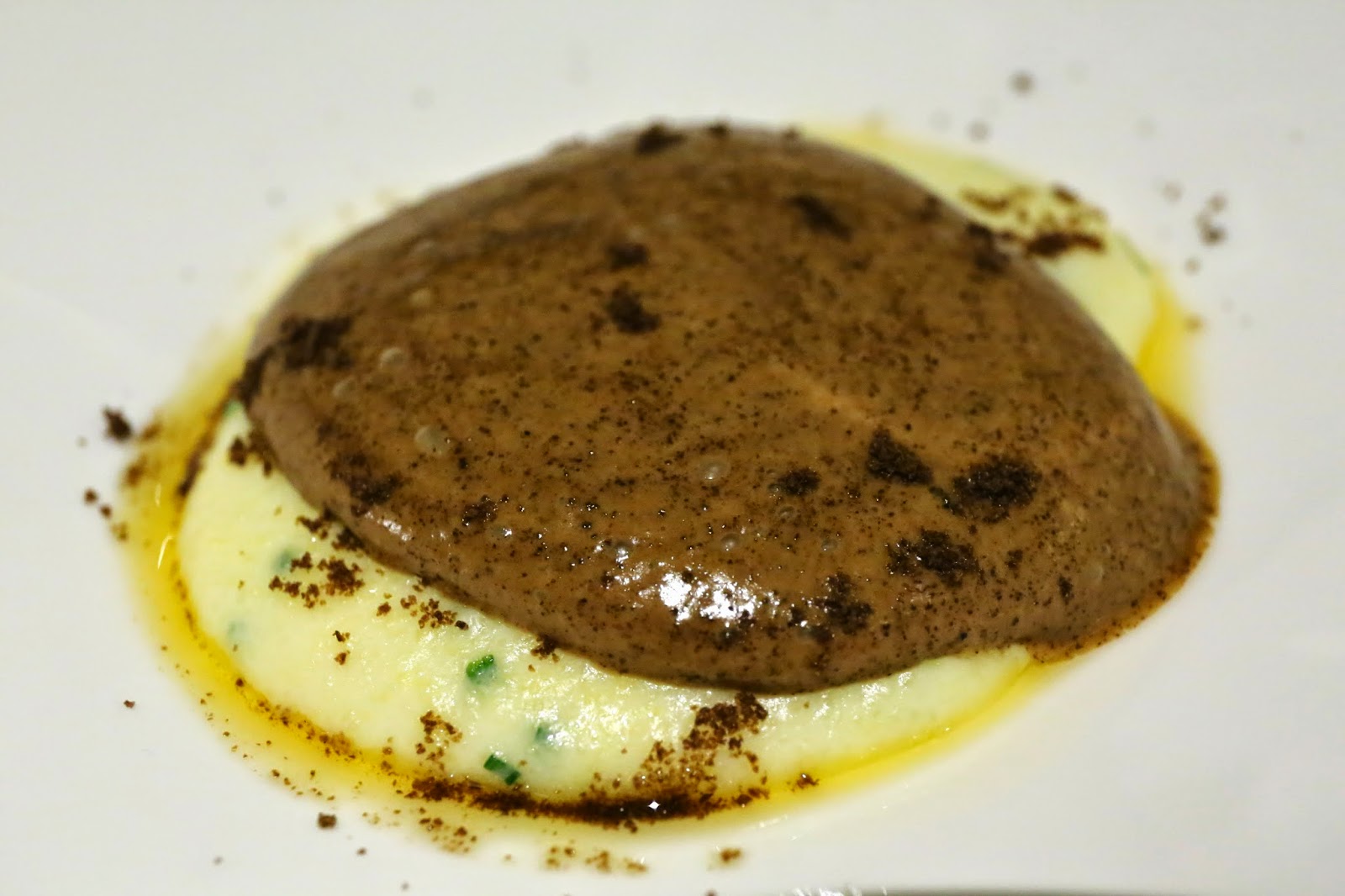 Polenta with smoked haddock and coffee sabayon - soft and delicious polenta, with olive oil that Akrame makes himself. The haddock was salty and wonderfully smoky. Yum.